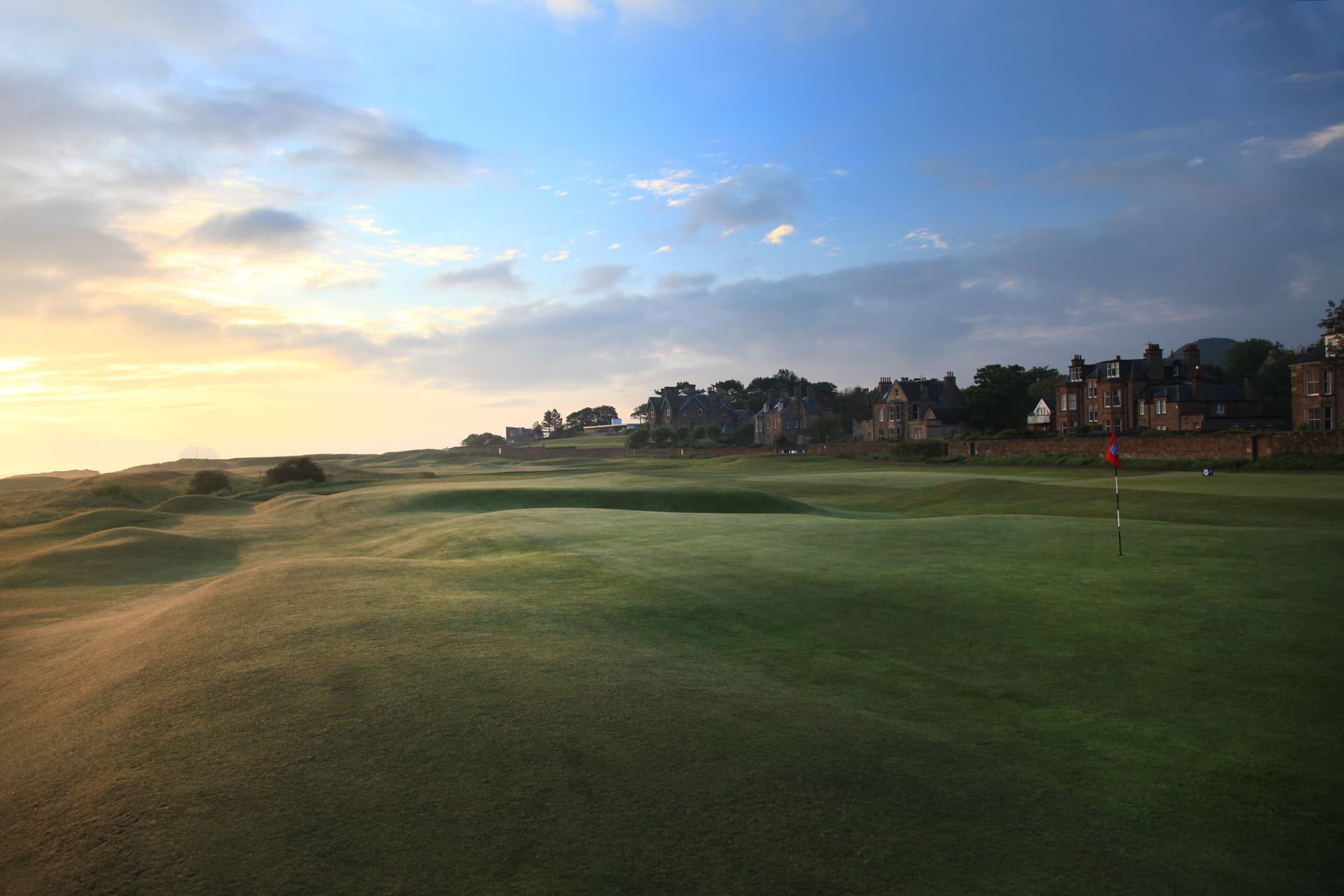 The "Gate" hole at North Berwick Golf Club in Scotland does more than inspire questions about the nature of the Biarritz; it inspires questions as to the template's origin story. The approach shot on this par 4 is much shorter than a typical Biarritz, but the green is much more severe. Similar to the course's iconic Redan, the green tilts down from front-right to back-left, and is divided by a gully reaching Yale-level depths.